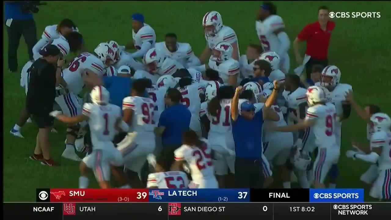 Watch Smu Avoids Upset Against Louisiana Tech With Last Second Hail Mary Cbssports Com